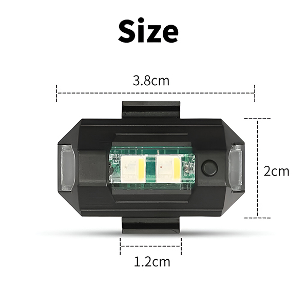📏 Kompakt és könnyű – 3,8 x 2 cm, ABS burkolat, a készlet 2 db lámpát, tépőzárakat, gumigyűrűket és USB töltőkábelt tartalmaz.