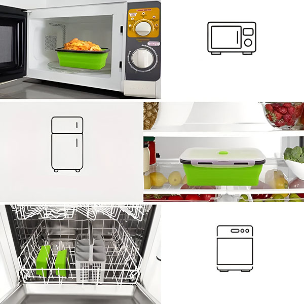 A kiváló minőségű, BPA-mentes szilikonból készült tárolók biztosítják, hogy az ételek frissek és káros vegyi anyagoktól mentesek maradjanak.