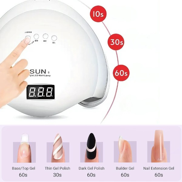 A 3 időzítő beállítással (10s, 30s, 60s) személyre szabhatja a szárítási folyamatot a gél típusának és személyes igényeinek megfelelően. Az intelligens érzékelő automatikusan bekapcsol, amikor a keze vagy a lába a lámpa alá kerül, biztosítva a zökkenőmentes élményt minden alkalommal.